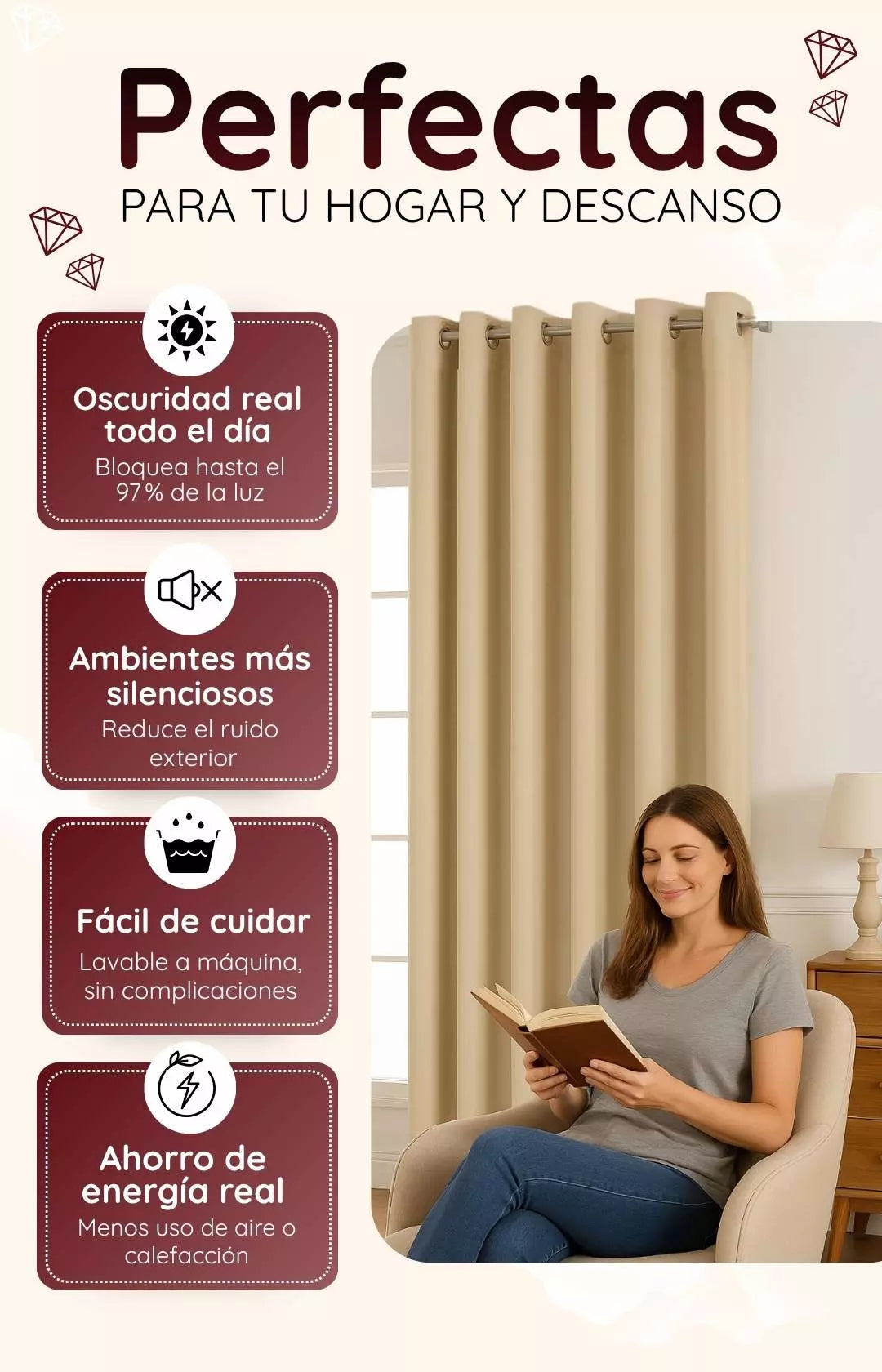 Sí — gracias a su construcción (tejido denso + doble panel) y propiedades de aislamiento, contribuye tanto al control térmico como a la reducción de ruido. Aunque no es una solución de insonorización total, muchos usuarios notan una mejora significativa en el confort del ambiente.